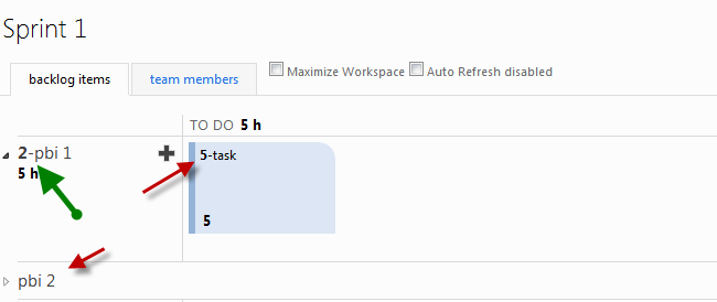 If you look at the image closely, you will noticed that in the collapsed parent work item (the horizontal lane) the work item id is not visible, it an unfortunate side effect due to a quirk in the current implementation of the task board. I’m evaluating if I can work around this behavior with an elegant hack. Perhaps in the next version.