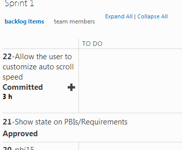 Show the state of a PBI/Requirement in the task board, this will allow you to see the state of a PBI without the need to open it. The state is shown in both expanded and collapsed PBIs/Requirements view.