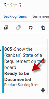 Assume we customized the kanban board and added a ”Ready to be documented” state.