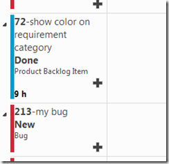 Previously the color was only shown IF the board contained more than work item type in the requirement category, starting this version the color is shown if the process template has more than one work item type in the requirements category regardless of the work item types visible on the board.